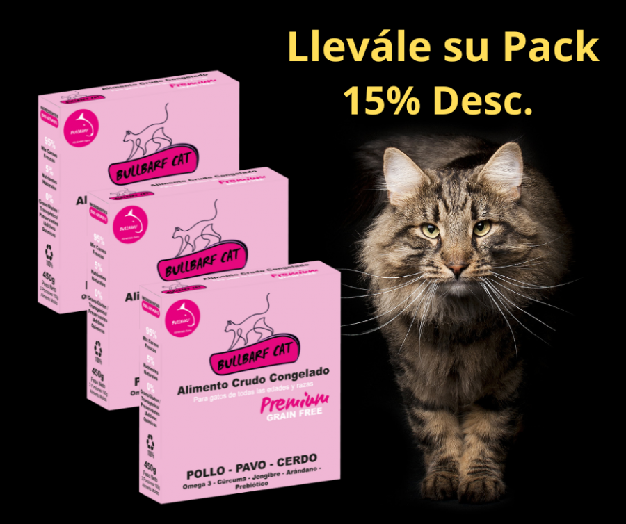 Cada estuche de 450g trae 3 porciones de 150g selladas al vacío. Alimento crudo congelado para gatos de toda edad y raza, de fórmula equilibrada y elaborado con un mix de carnes frescas (carne de Pavo, carne de pollo, hueso carnoso de pollo, corazón de cerdo y pollo, hígado de cerdo y pollo), que aportan la proteína, vitaminas, minerales y aminoácidos esenciales como la taurina. Complementado con Ingredientes Naturales de alto valor nutricional como el aceite omega 3 (DHA +EPA), prebióticos naturales y una fuente natural de minerales y vitaminas esenciales. Beneficios para la nutrición del gato: piel, pelaje, peso ideal, energía, vitalidad, actitud positiva, bienestar general, heces, huesos, actividad renal, metabólica, cardiovascular y salud intestinal.